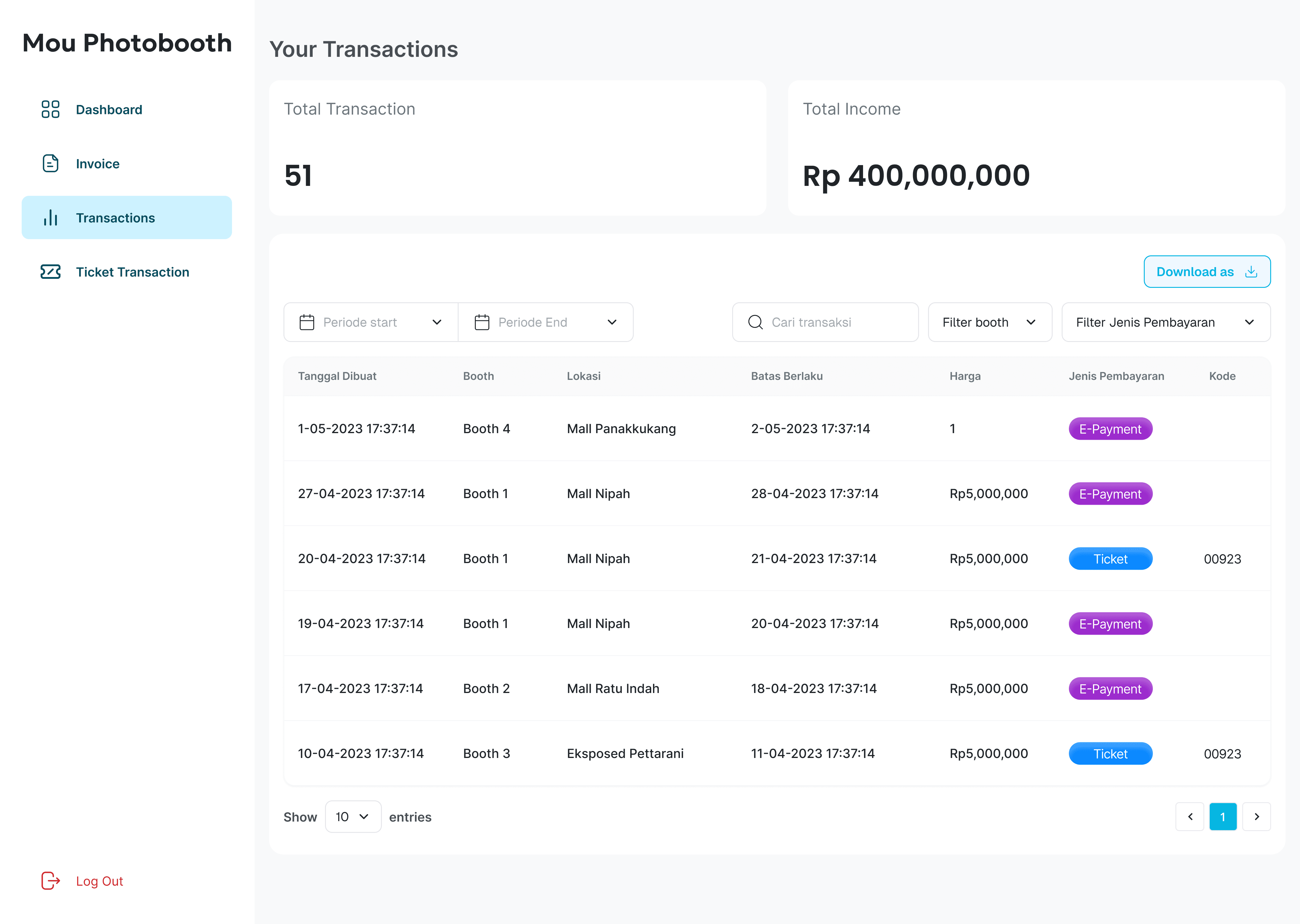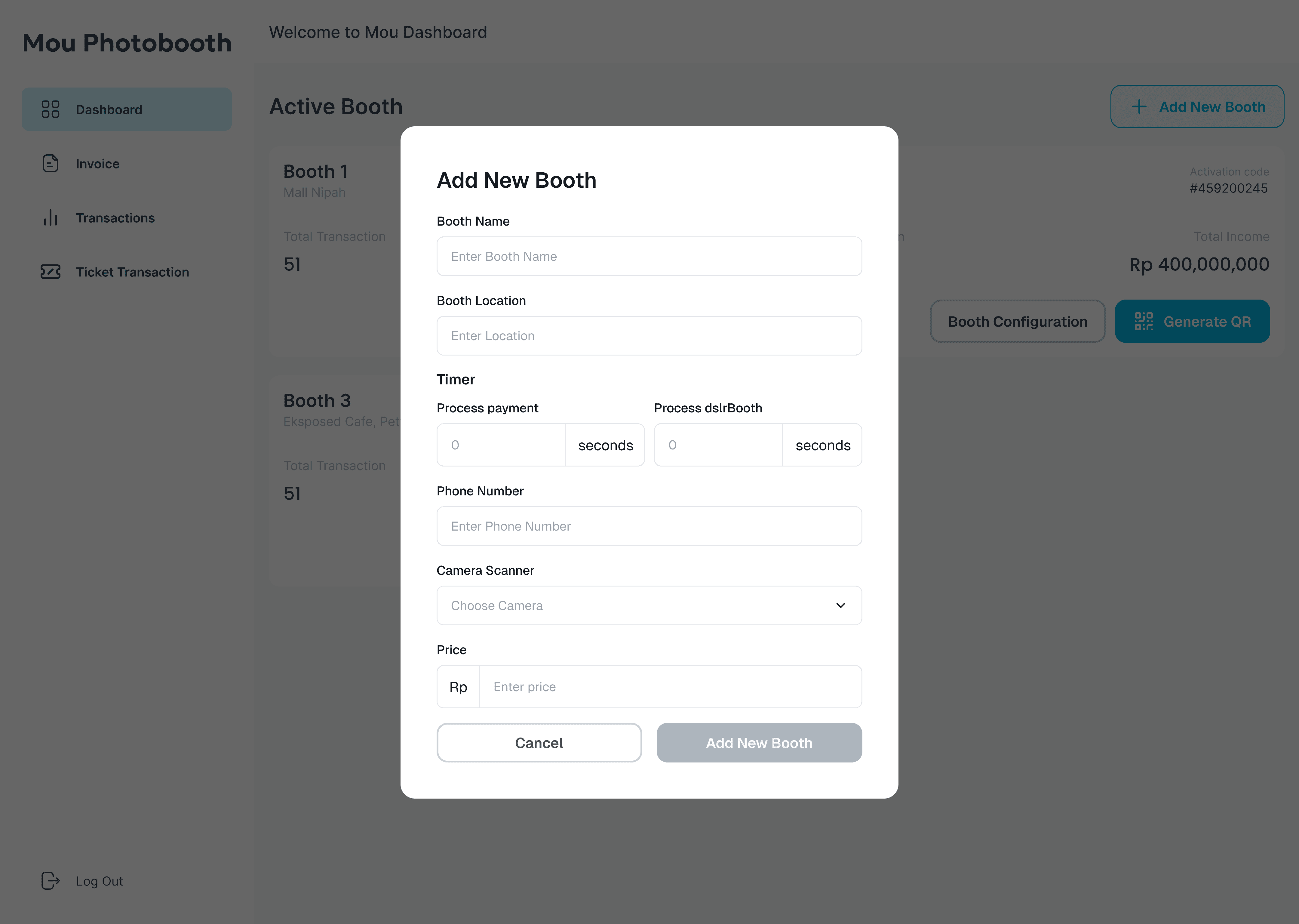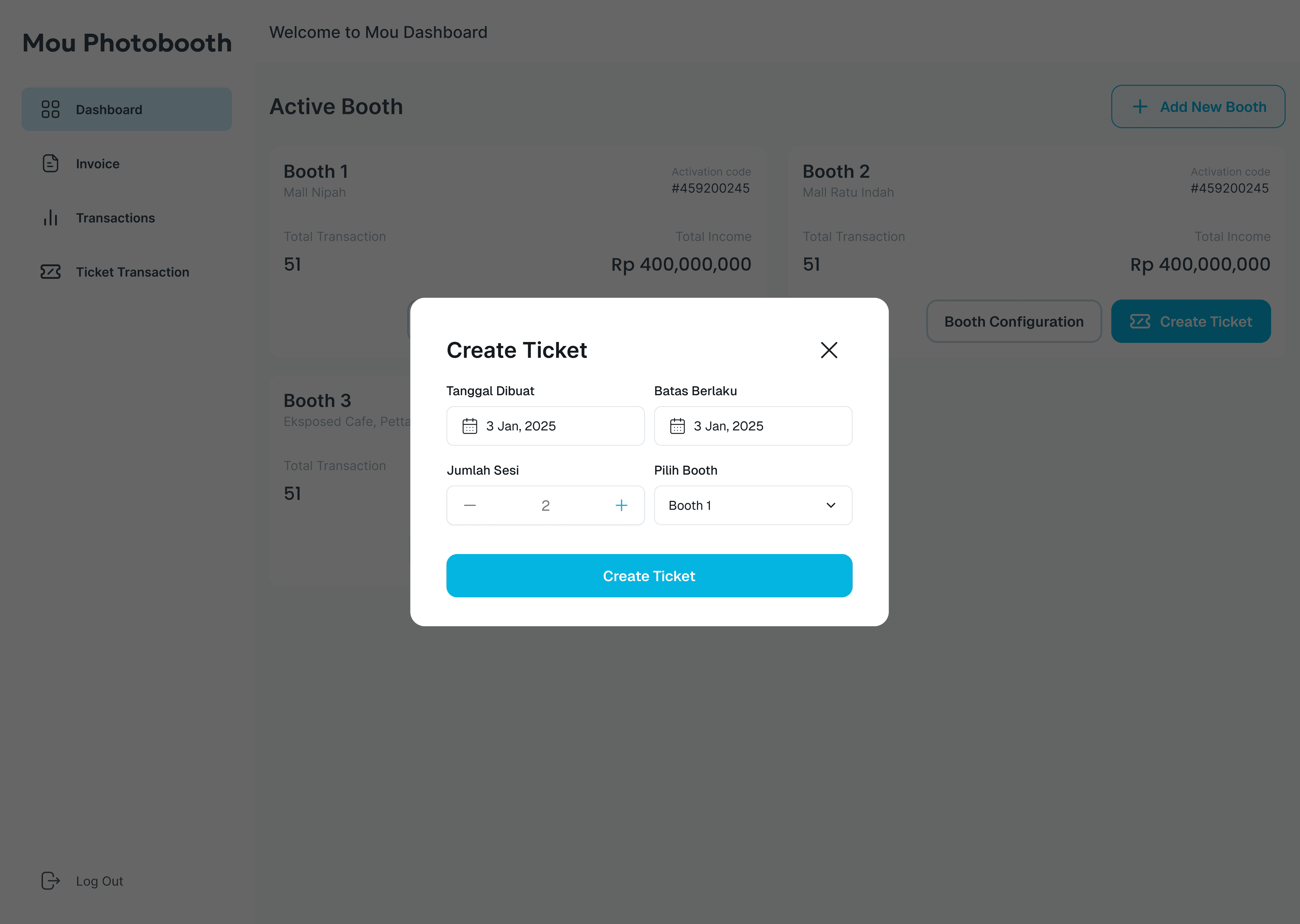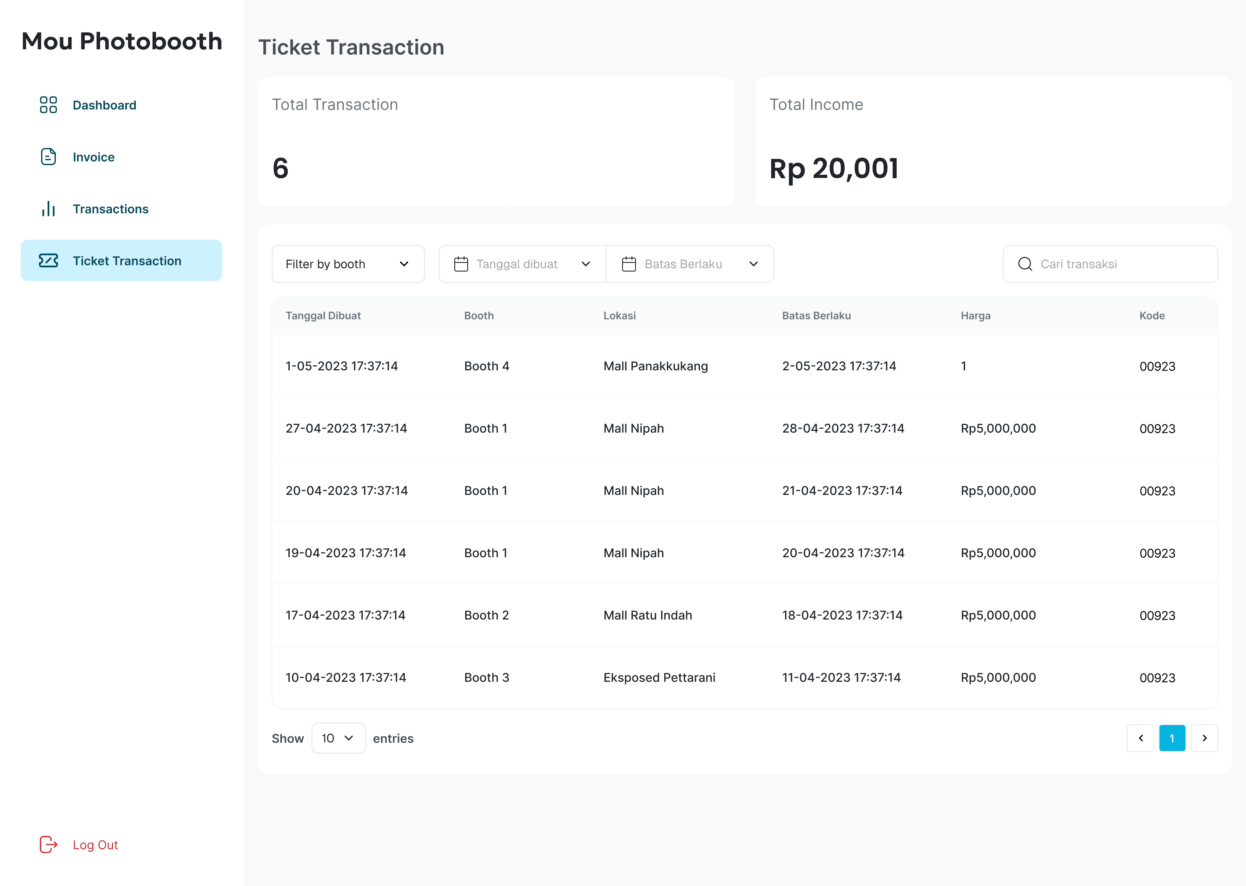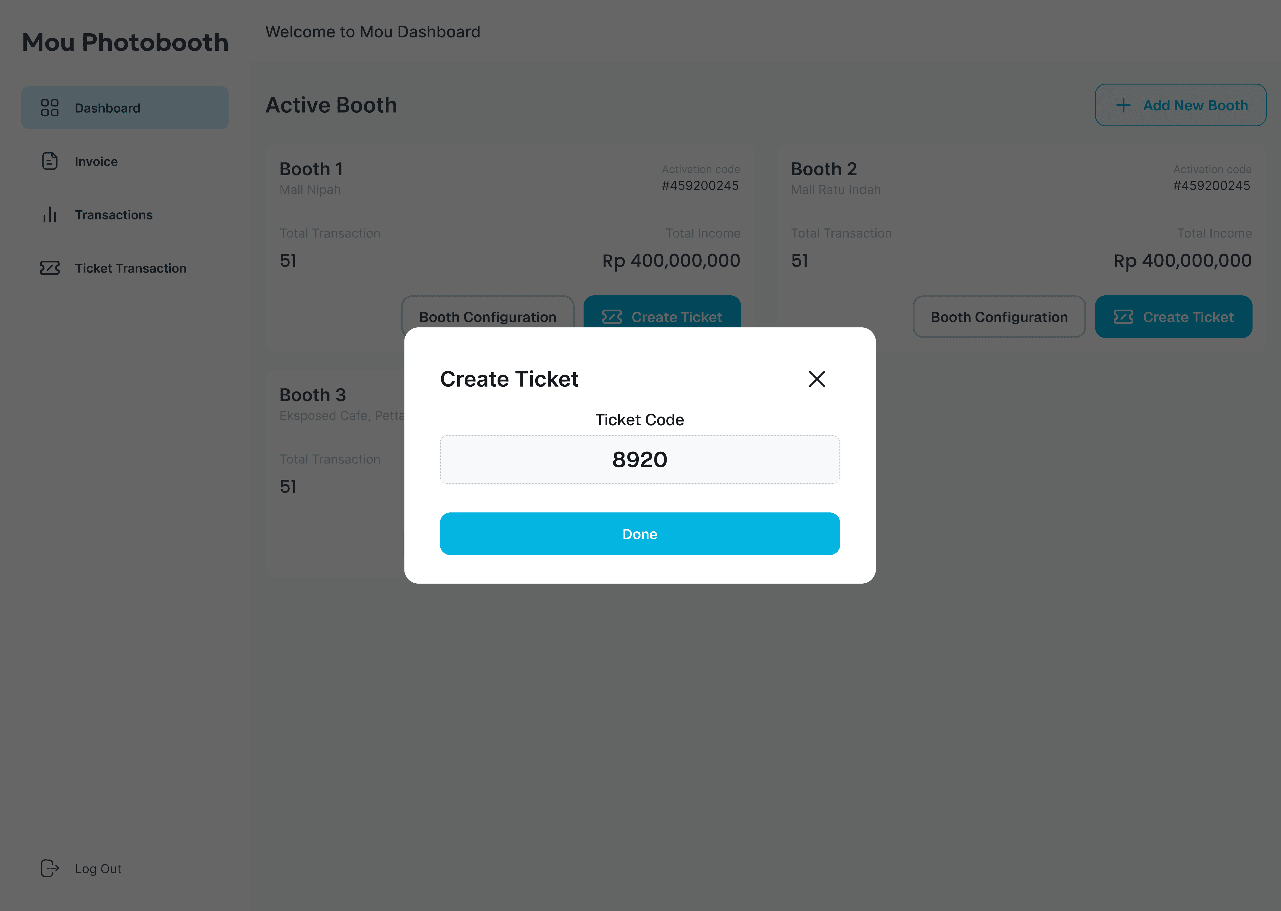 Admins can generate tickets with unique codes. These codes can be used by customers to access the booth instead of QR payments. So, people who want to pay with cash can use this payment option.
