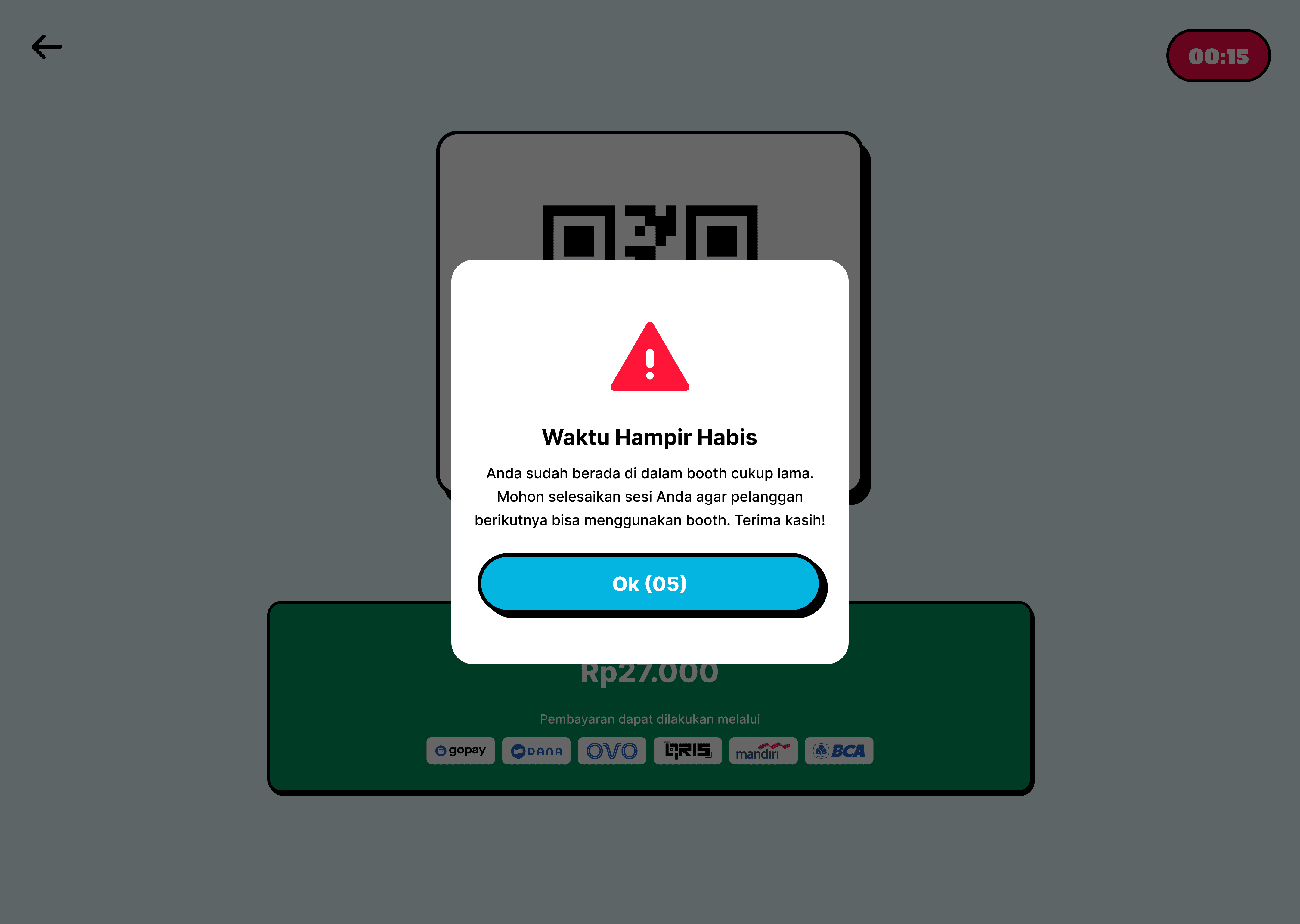If payment takes too long, a timeout warning pops up. This keeps the booth available for the next user.